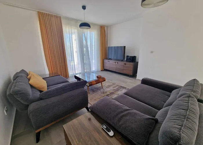 Mit Blick auf den Pool bietet das am Strand 2-Bedroom Garden Close To Sea Holiday Apartment auch eine sonnige Terrasse mit einem Swimmingpool. Der Flughafen Ercan ist 40 km von dem 2-Zimmer-Apartment entfernt.